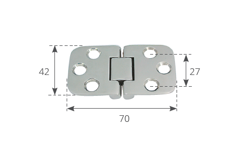 Cerniera in acciaio inox AISI 316 lucidata a specchio con arresto per tavoli dim. mm. 70x42, spessore mm. 2,2.